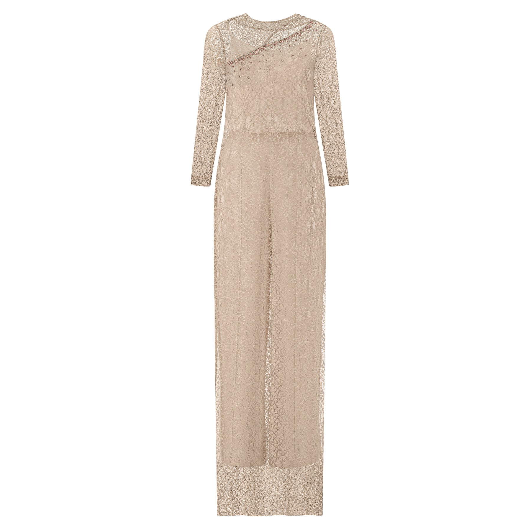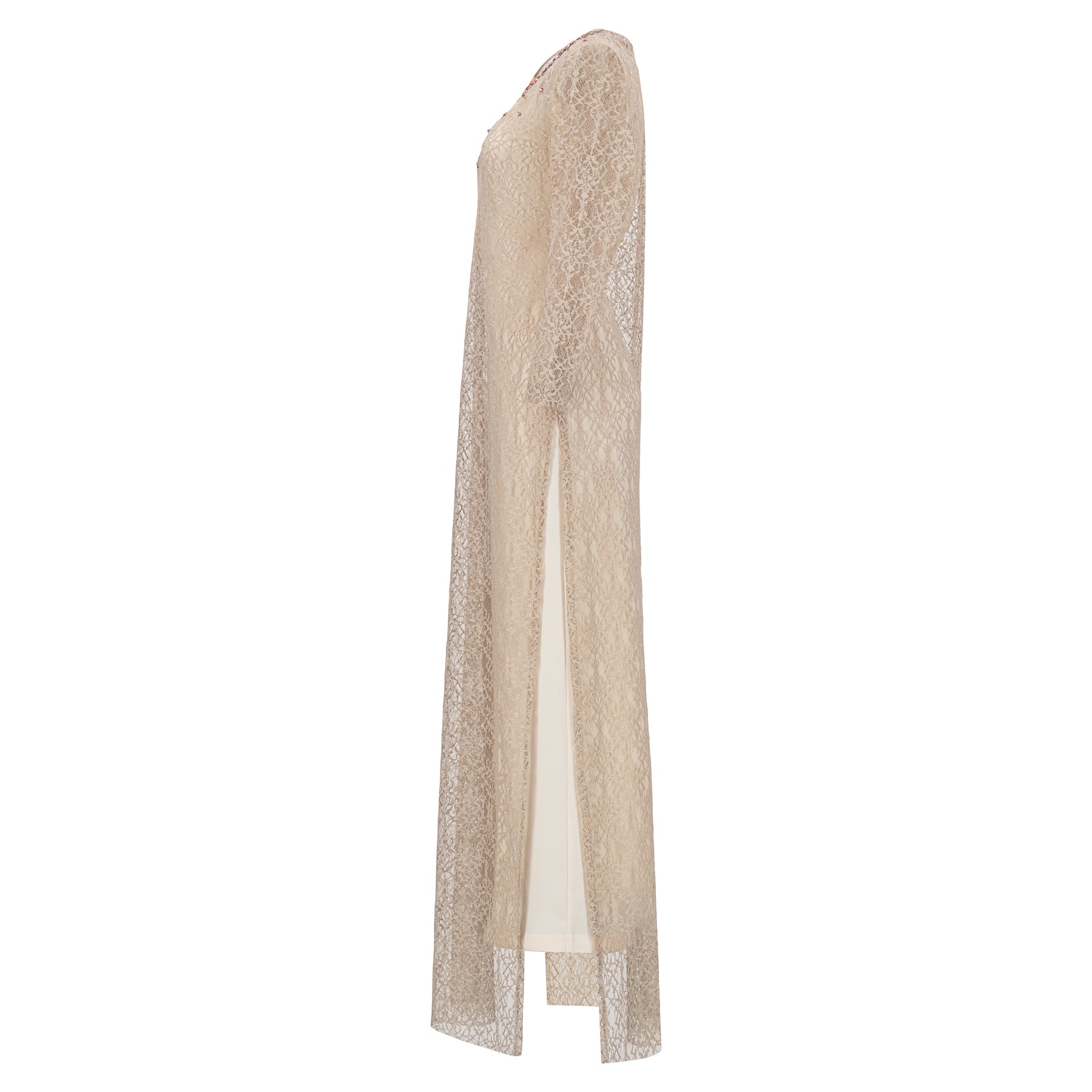 Delicate lace straight-cut dress with a V-neckline with intricate embellishments, paired with a camisole & pant